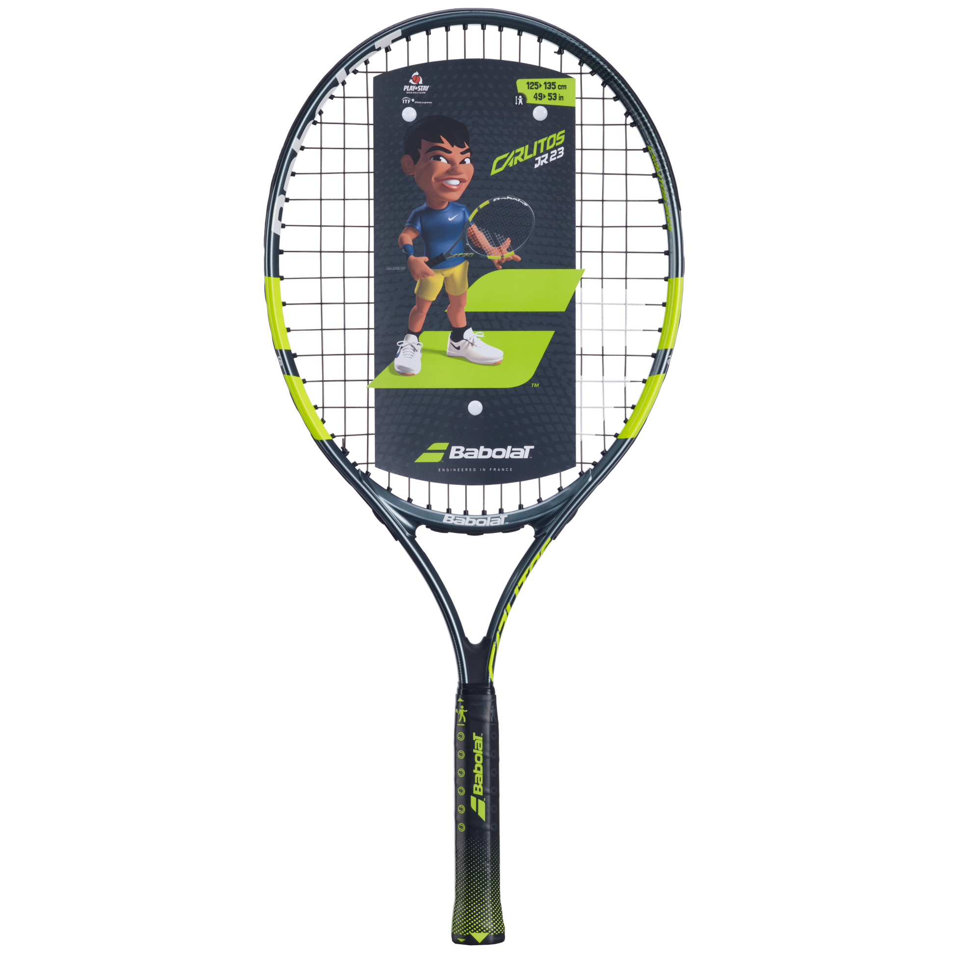 The Carlitos Junior 25 is designed for young players between 49in and 53in tall who are just starting their tennis journey and aspire to follow in the footsteps of their hero, Carlos Alcaraz.