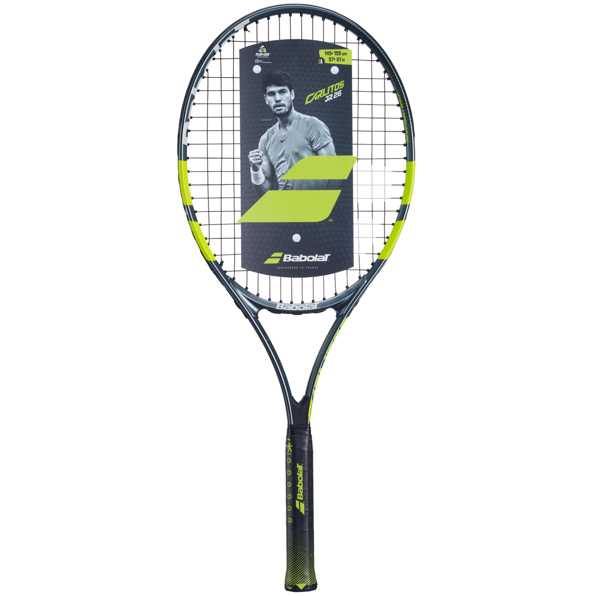 The Carlitos Junior 26 is designed for young players between 57in and 61in tall who are just starting their tennis journey and aspire to follow in the footsteps of their hero, Carlos Alcaraz.