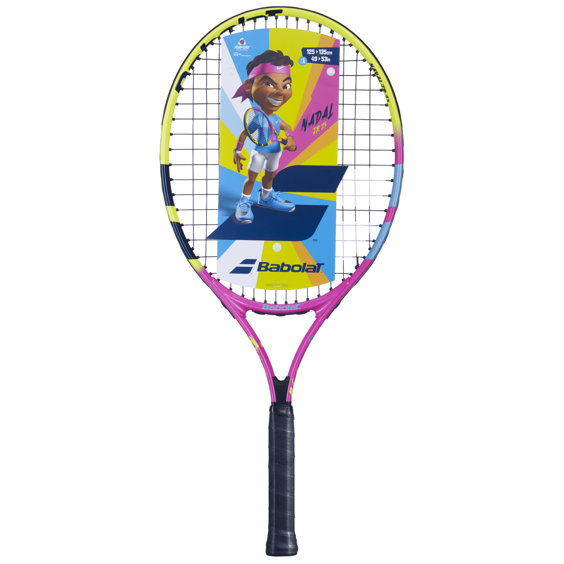 The Nadal Junior 23 racquet is suitable for young beginners measuring between 125 and 135 cm.
