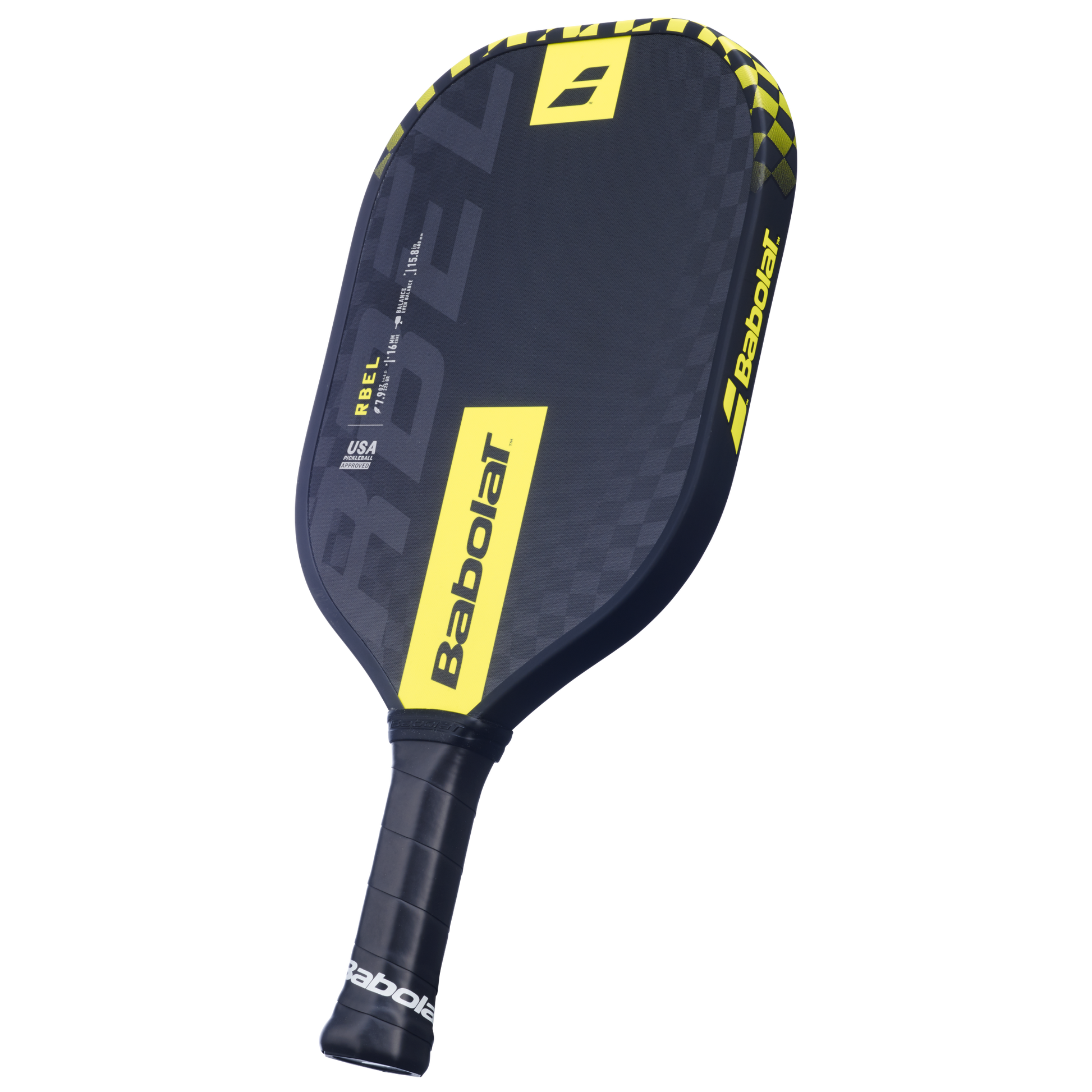The Babolat RBEL pickleball paddle is a control performance paddle for competitive players. Its widebody shape and 16 mm thickness create a large sweet spot, making it easier to consistently execute perfect dinks, drops, and resets.